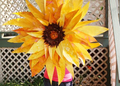 $1 and Free Decor Party Crafts Weddings Make a Giant Paper Sunflower for $1 July 22, 2012 53458 Views 5 Comments When she said she made a giant paper sunflower, Aunt Peaches wasn’t kidding; it’s big enough to hide behind! Inspired …
