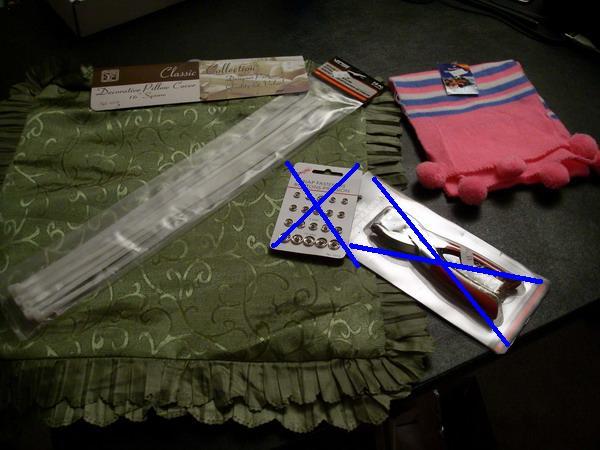 - 3 Silk-brocade pillow cases, 2 for $1.95, 1 for $1.50 (you’ll find out later why one was cheaper)