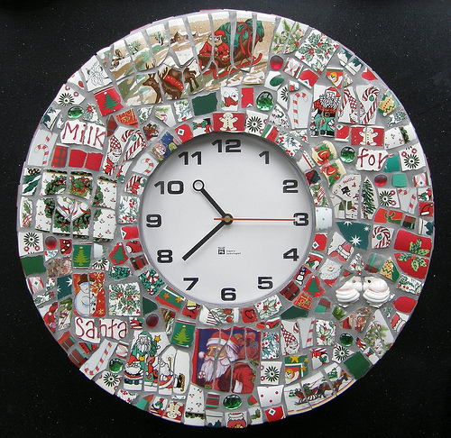 $10 and Beyond Decor Holiday Crafts Make a Mosaic Clock out of Christmas Dishes December 09, 2008 10380 Views 2 Comments This wonderful mosaic clock was made from broken Christmas dishes and glass marbles. You should be able to find a …