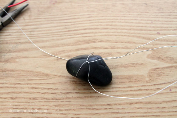 4. There is no wrong way to wrap. Just go around the rock one or two times from different angles. You can tighten the wire later using the wire-kinking method you used with the floral wire.