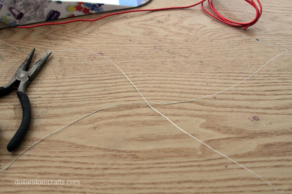 Wire: You can find the thin, green floral wire, the thick decorative wire, and wire cutters in the floral section of the dollar store. If you can’t find the thick decorative floral wire, pick up a spool of colored 20-Gauge Wire in the jewelry-making section of your local craft store for about $5. You can also use plain silver floral wire instead of green floral wire if you prefer.