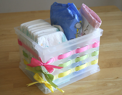 $5 and Under Decor Office Crafts Make a Pretty Woven-Ribbon Container January 04, 2009 5395 Views 2 Comments Marie at Make and Takes embellished a dollar store plastic crate with ribbon to make a pretty container for storing …
