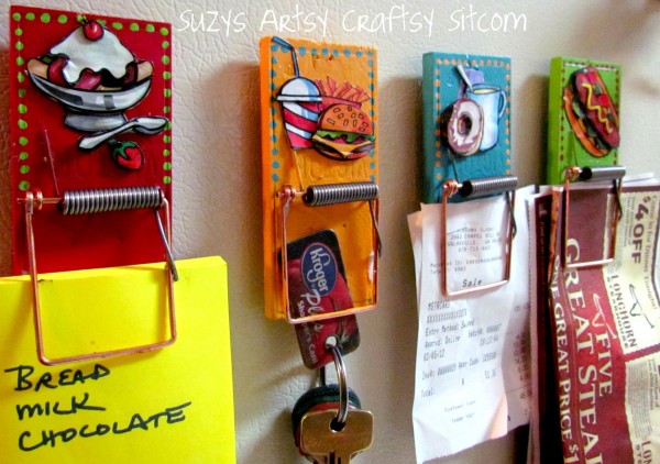 When you see a package of mouse traps, what’s the first thing that comes to mind? For Suzy at Suzy’s Artsy Craftsy Sitcom, the initial thought was something along the lines of, “ooh, magnetic clips for the fridge!” After removing the unneeded bits of the mouse traps, she gave them a decorative one-two punch with bright paint and some 3D clip art. The transformation is very impressive! [how to make mouse trap magnet clips]