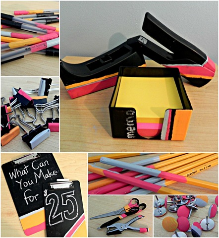 For $25 and some Plaid products, I was able to create trendy and practical supplies for my office. These would make a fantastic, inexpensive gift for a student heading of to college or a graduate entering the workforce for the first time!