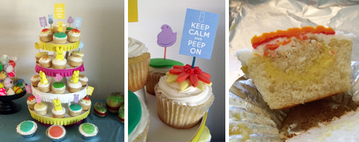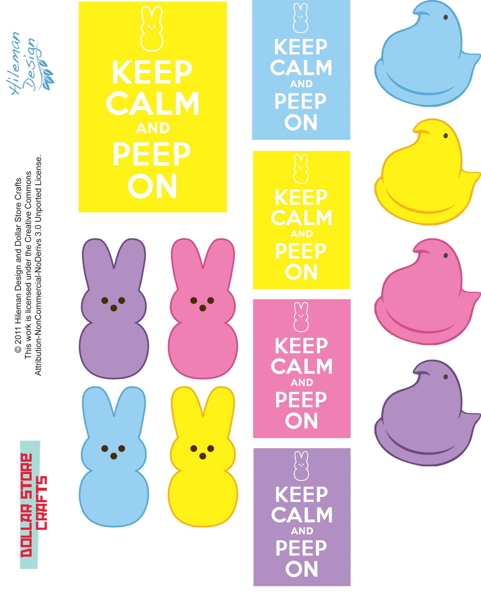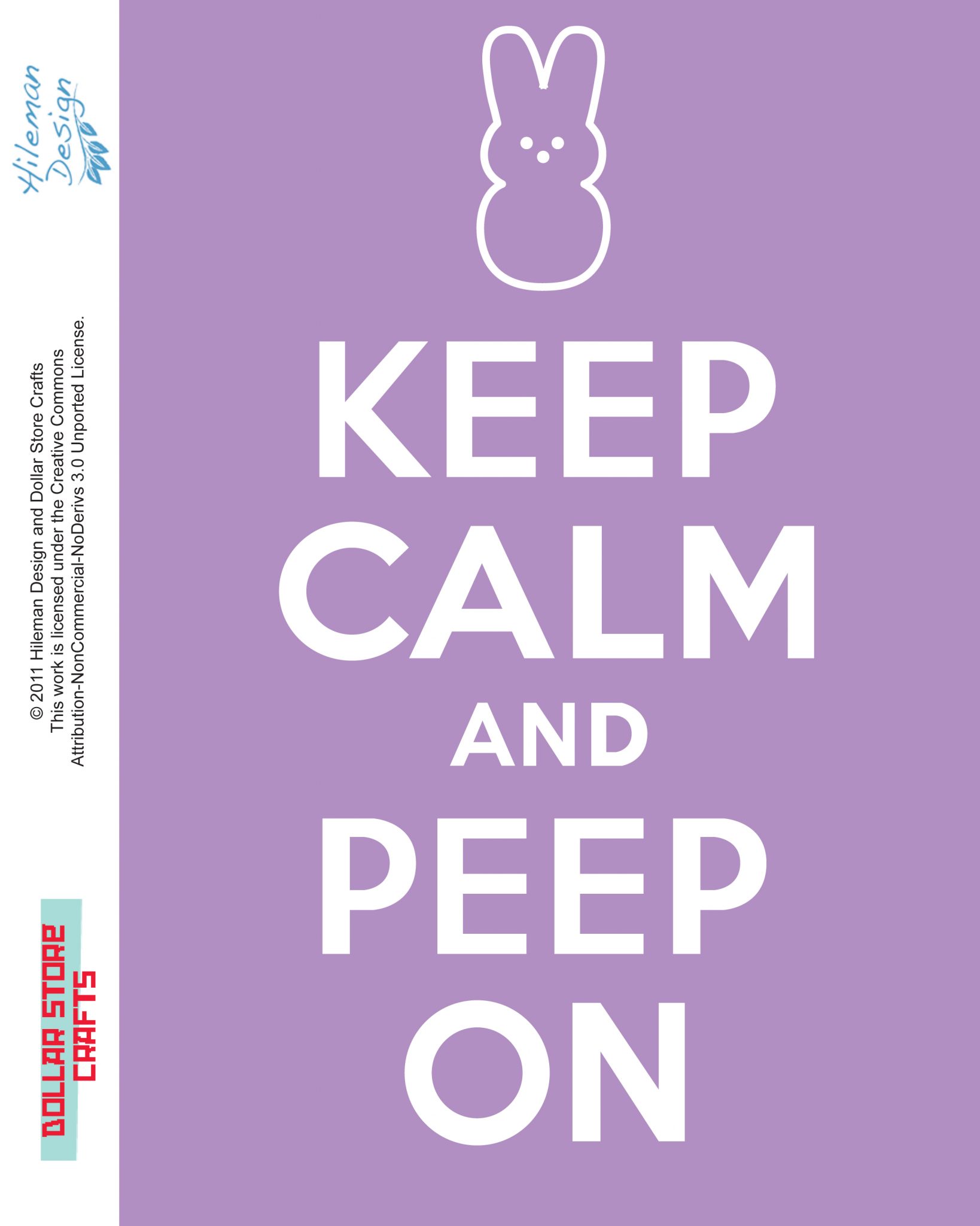 Melinda went all out and made a PEEPs cupcake tower. The completely from scratch cupcakes consisted of a vanilla bean cupcake, vanilla bean creme brulee cream filling, vanilla bean buttercream and toasted PEEPs marshmallow fondant. Melinda isn’t a big fan of the taste of fondant, but this stuff was so good that she and her hubby enjoyed not only the fondant on the cupcakes, but some of the leftover fondant as well! The cupcakes are topped with either a real PEEP, a paper PEEP or a “Stay Calm and PEEP On” topper. Want your own PEEPs toppers? Here’s your free printable download! Just want the signs in a bigger format to print? Here they are in blue, pink, purple and yellow! |