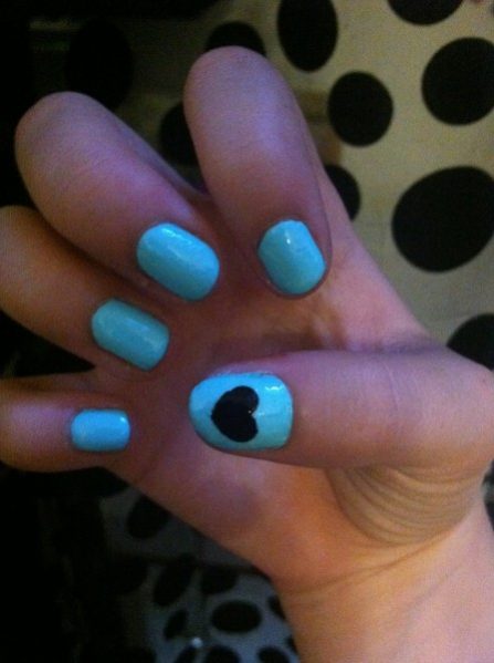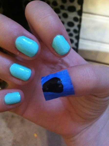 *Polishes used here: Essie Grow Stronger basecoat, Color Club “blue-ming”, OPI Black Onyx, Sally Hansen Mega Shine topcoat