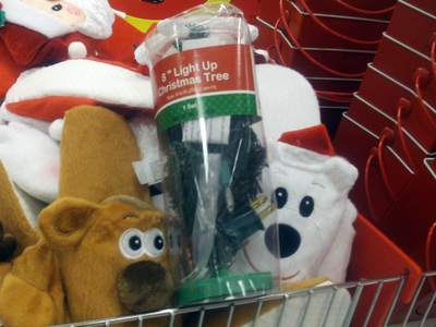 You’re looking at holiday character slippers ($2.50) and 8″ light up tree (also $2.50). There were taller trees that are not pre-lighted that were also $2.50.