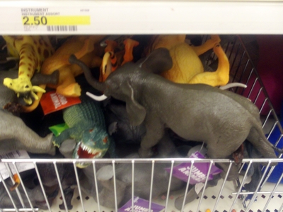 Realistic plastic animals for $2.50 (in the same family as Schleich animals, which I am in love with), but not as nice. Still, these would blend in with your Schleichcollection.